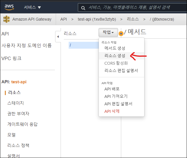 1. API Gateway 리소스 생성