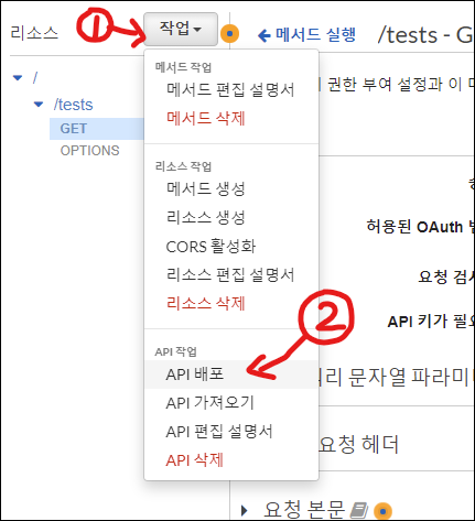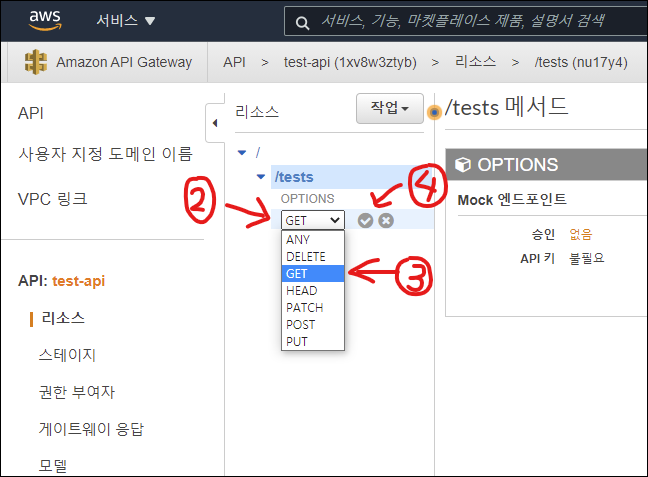 2. API Gateway 메서드 생성